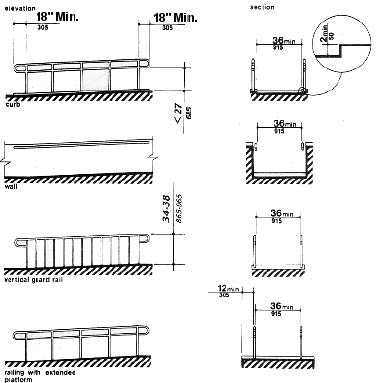 Handrails – 34” to 38” shall extend 18 inches at top and bottom.