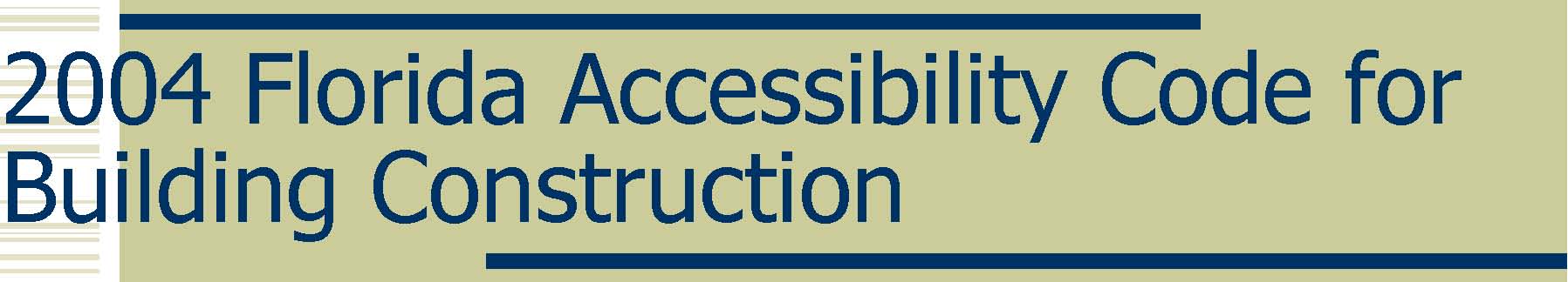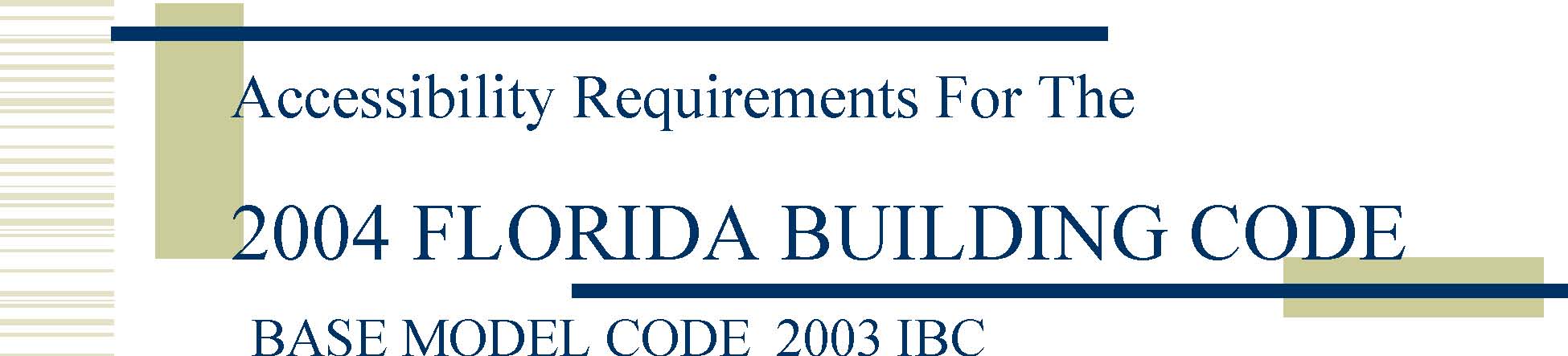 Building Volume, Editorial Changes Plumbing Volume, No Changes Residential Volume Accessibility Incorporated Base Document (1997 Accessibility Edition) No Changes 2004 Access Board Guidelines Not Implemented, Not Law Florida Law 553.501-553.513 No Changes