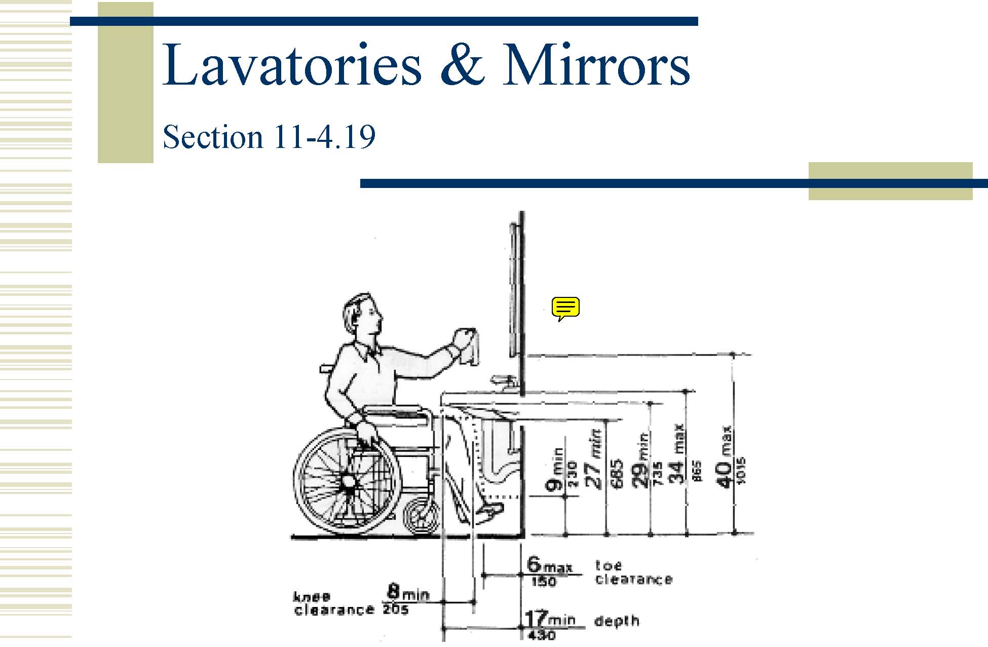 Mirrors – bottom edge of reflective surface no higher than 40 inches