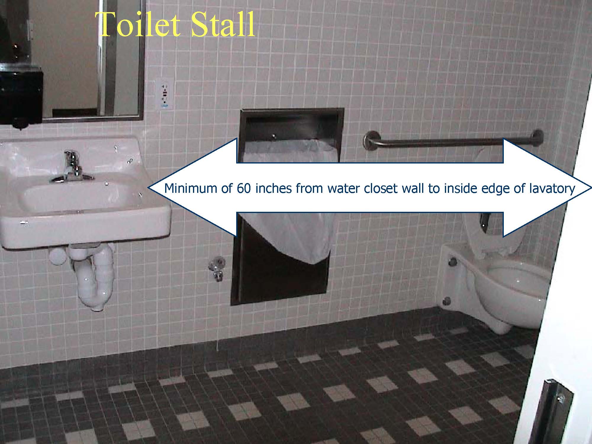 The “Florida accessible stall”: New construction shall contain a lavatory that complies with the Code. The lavatory shall be mounted so as not to overlap the clear floor space areas required.