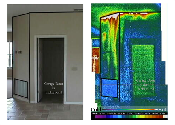 in a utility room. Right: Infrared image showing hot attic air (see color
