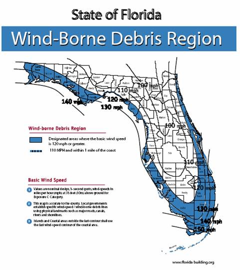 Florida-Alabama line where the region includes areas where design to 130mph or