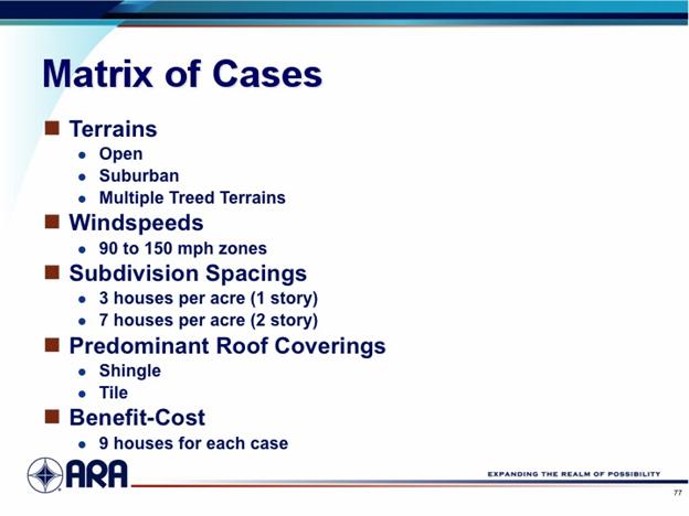 Larry Twisdale and Peter Vickery, ARA, presented a PowerPoint presentation on wind-borne
